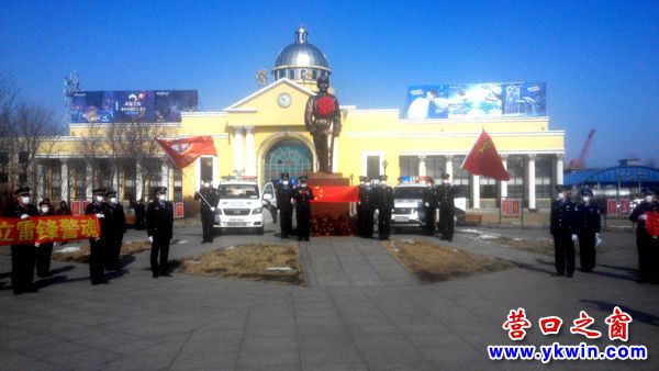 營(yíng)口40余名警察齊聚火車(chē)站廣場(chǎng)紀(jì)念雷鋒