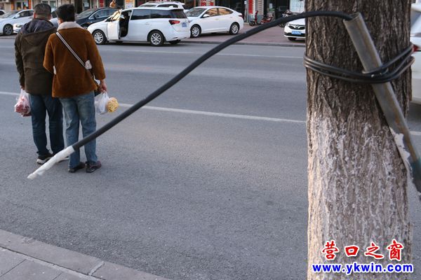 昨天發(fā)現(xiàn),營(yíng)口市新興大街中天新城小區(qū)南角門對(duì)過(guò)的人行道上“長(zhǎng)”出一根約2米長(zhǎng)的電線,一頭被捆綁在路邊的樹(shù)干上,給市民的出行帶來(lái)不便。安全隱患無(wú)小事,希望相關(guān)部門能處理一下。