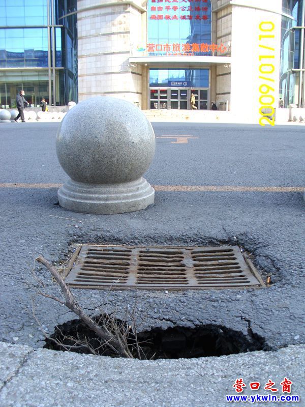 營口客運(yùn)站廣場前端口小肚大的地洞