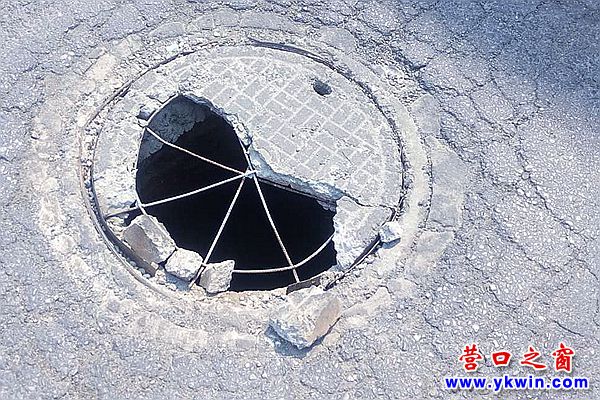 (營口之窗網訊 李 凱)據網友松哥爆料:營口市西市區(qū)紫文苑小區(qū)南門西行約50米,有一井蓋被碾壓塌陷。