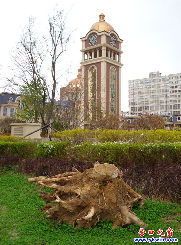 (營口之窗網(wǎng)訊 胡 然)截至4月17日,一個(gè)特大枯死的樹根被遺棄在營口市中天市府廣場西北角綠化帶里已有數(shù)月之久。隨著氣溫的上升,這個(gè)枯死的樹根與周圍嫩綠的小草已經(jīng)形成了鮮明的對比。而更重要的是,它身下的小草被它壓得喘不上氣、發(fā)不了芽、伸不直腰、見不到春天的陽光。