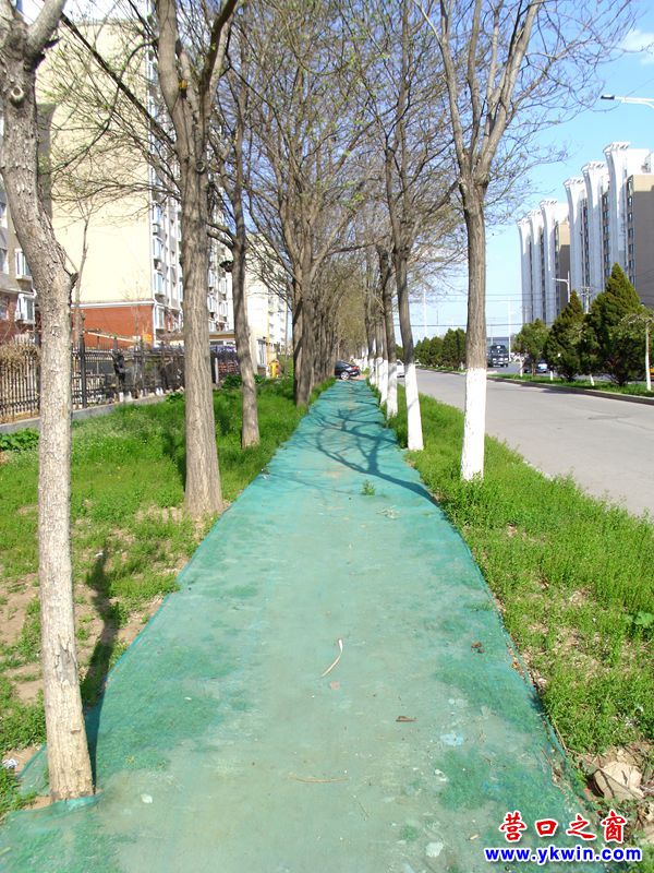 (營口之窗網(wǎng)訊 胡 然)4月26日,遍地的鮮花綠草又把營口市帶進(jìn)了一個明媚的春天。然而此時此刻,在金牛山大街黎明紡織公司附近的街邊還有幾百米的草坪被冬天的防塵網(wǎng)覆蓋著??上攵?,里面的小草至今享受不到“春風(fēng)啊春風(fēng)啊把我吹綠,陽光啊陽光啊把我照耀”的春天該有多么鬧心和焦急!