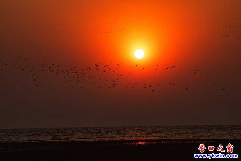 夕陽(yáng)半落望西汀,濕地奇觀鳥(niǎo)浪騰,