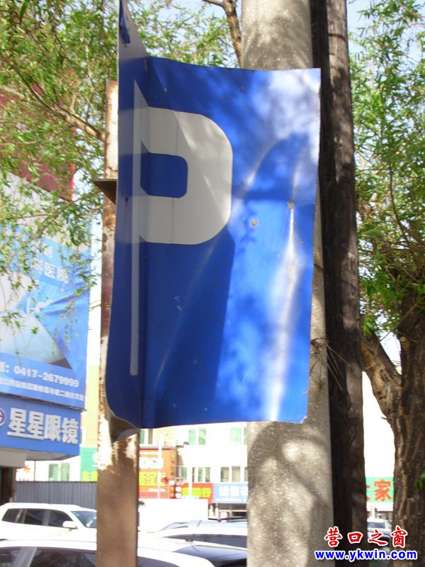 (營口之窗網(wǎng)訊 胡 然)5月11日,見到本應(yīng)呈180°角展示的營口市通惠門停車場標(biāo)志牌“P”竟變成了不到90°的“V”型。如此這般,從東西兩個側(cè)面看根本就看不見“P”。