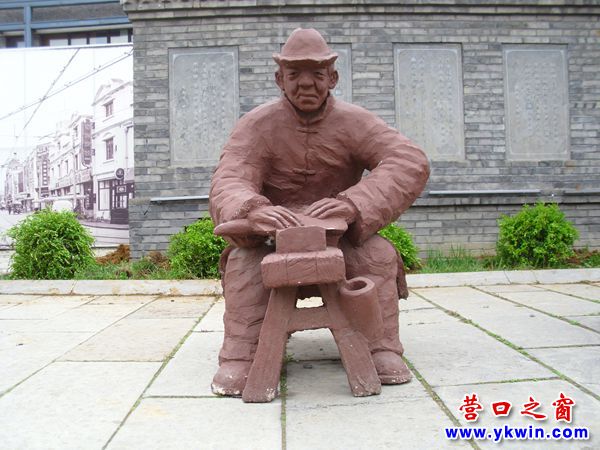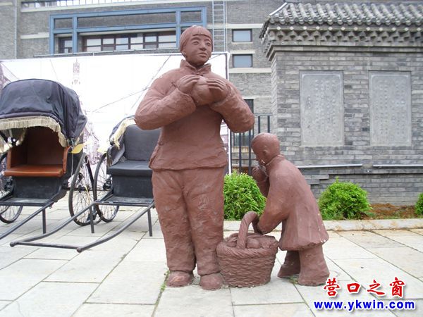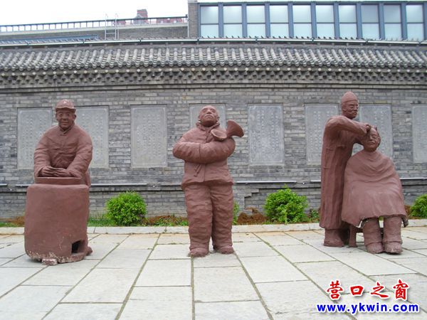 (營口之窗網(wǎng)訊 胡 然)5月16日,來到營口遼河老街見到一組泥塑再現(xiàn)了清朝商人、匠人和藝人為了生存各顯其能的情景。他們有的賣果蔬、烤地瓜,有的磨刀、理發(fā),有的吹嗩吶……