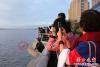 環(huán)衛(wèi)工人在市總工會(huì)西南面渤海大街邊推水