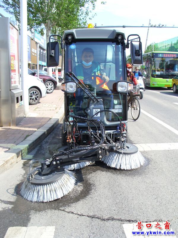 (營口之窗網(wǎng)訊 胡 然)5月26日,一輛新型道路清掃車在營口市盼盼路上亮相,年輕的環(huán)衛(wèi)工人開著它清掃垃圾臉上露出了幸福的微笑。據(jù)了解,這樣的車全市首批只購進(jìn)了兩輛。