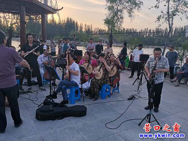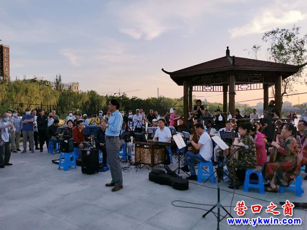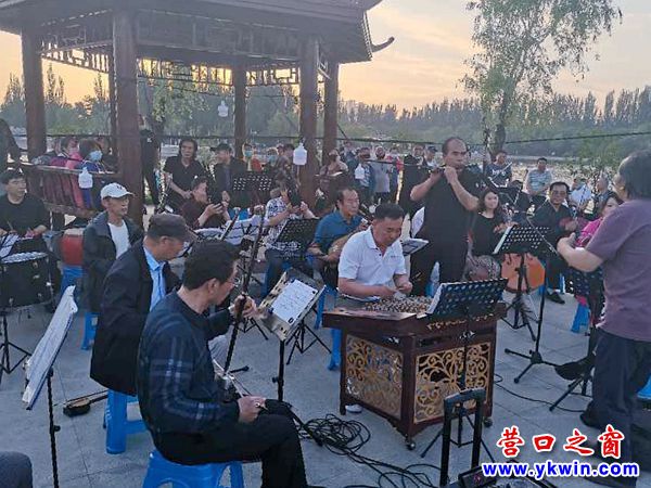 (營口之窗網訊 )營口市公共文化服務中心分支機構少數(shù)民族文化館群眾文化志愿者惠民演出活動,昨晚六時在市鏡湖公園湖心亭舉行。營口民族樂團等文化志愿者五十余人參演,現(xiàn)場觀眾達三百多人。