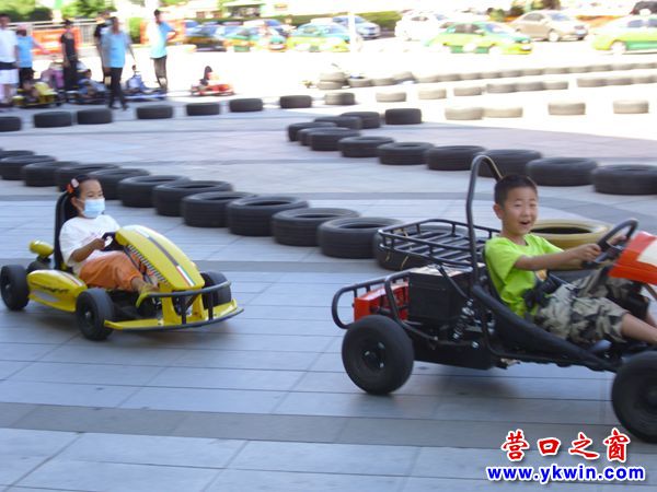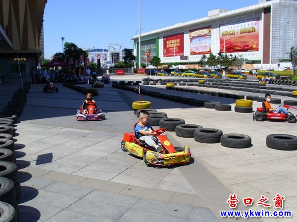 (營口之窗網(wǎng)訊 胡 然)昨日,來到營口市萬達廣場,見到五六名兒童正在開著賽車繞圈跑。這一情景在營口前所未見。另外,這個賽車場的跑道是用遺棄的廢舊汽車輪胎擺成,既安全防撞又給汽車廢舊輪胎找到了新的用途。