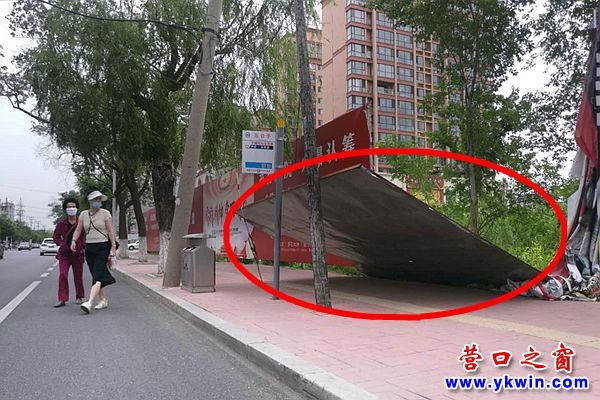 (營口之窗網(wǎng)訊 李凱)今天早上,位于營口市西市區(qū)平安路五臺子公交車乘降站點,一廣告牌 “呼呼啦啦”倒下來,擋在人行道上,給行人帶來一定的安全隱患。望相關(guān)部門進一步加強檢查力度,消除安全隱患,保護市民安全。