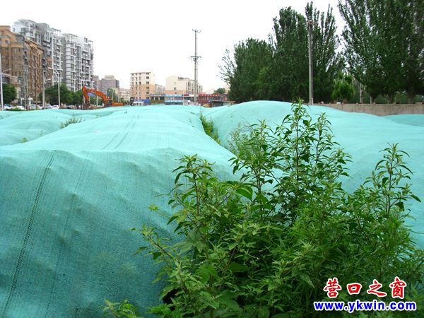 (營(yíng)口之窗網(wǎng)訊 胡 然)6月24日,途徑營(yíng)口市遼河大街,在財(cái)富公館小區(qū)附近見(jiàn)到大半個(gè)足球場(chǎng)大的空地上,去年冬天鋪設(shè)的防塵網(wǎng)已變成了與大墻同高的防塵棚了,原因是壓在防塵網(wǎng)底下旺長(zhǎng)的野草支撐的。