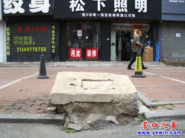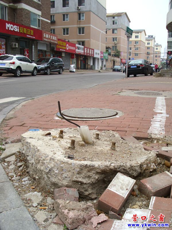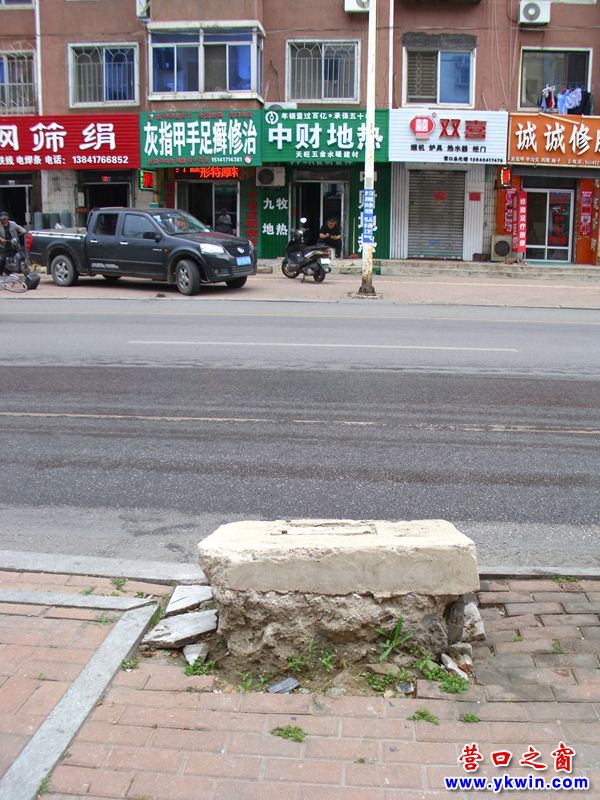 (營口之窗網(wǎng)訊 胡 然)6月30日,從營口市建設(shè)街穿過,僅從東新街附近到文健路一段就發(fā)現(xiàn)4個大到一平方米、小到一平方尺的混凝土路障。其中東新路東五六十米內(nèi)兩個,光華路西五六十米一個,文健路口一個。這幾個路障滯留街邊每時每刻都在妨礙著行人行車的通行,行人如果不小心還有可能被它們絆倒摔傷。