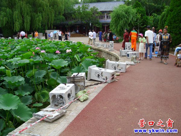 (營(yíng)口之窗網(wǎng)訊 胡 然)昨天,營(yíng)口之窗報(bào)道了營(yíng)口楞嚴(yán)寺公園荷花湖16個(gè)護(hù)欄石墩(荷花燈)夜間遭到損壞的事。7月14日,落水的14個(gè)石墩(荷花燈)已全部打撈上岸,這一事件也有了初步調(diào)查結(jié)果。