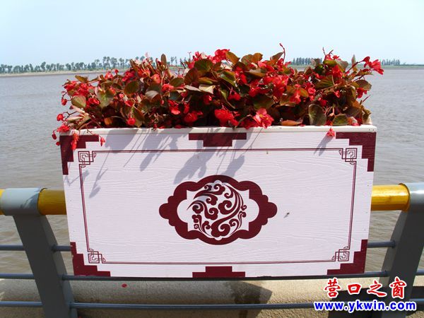 (營口之窗網(wǎng)訊 胡 然)7月21日,營口遼河南岸首次鑲上了花邊,只見護欄上每隔五六米就安放一個栽滿了鮮花的花箱。這無數(shù)箱鮮花連在一起就等于給遼河鑲上了一道花邊。連遼河護欄都有鮮花相伴,說明營口已經(jīng)綠化美化到牙齒了。