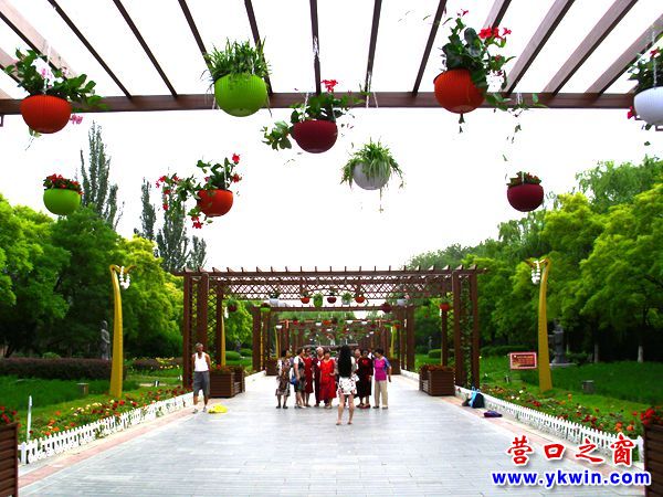 (營口之窗網(wǎng)訊 胡 然)中伏時節(jié),營口市綠樹成蔭,鮮花遍地??墒情L在空中的鮮花難得一見。7月27日,來到營口楞嚴寺公園居然發(fā)現(xiàn)了百余盆吊花。這一景觀,引得游客紛紛拍照,就連老太太也結(jié)伴來到吊花下留下美麗的瞬間。