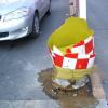 (營口之窗網(wǎng)訊 胡 然)營口市渤海大街萬達段機動車轉(zhuǎn)向街口擺放的兩個防撞桶,8月10日,一個只剩桶底,另一個則被撞癟,可它們還在站崗。在城市的中心出現(xiàn)如此情景不能不令人皺眉,因為它有悖營口有禮。