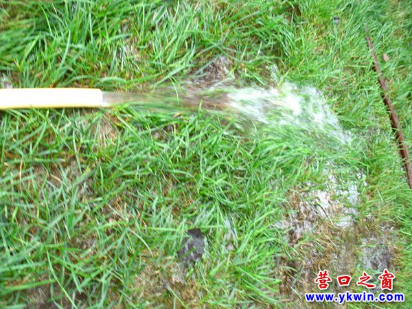 為了弄清原因,8月10日早晨營口之窗通訊員專門進(jìn)到園內(nèi)查看,發(fā)現(xiàn)這河水的源頭是一根冒水不止的水管(圖二)。