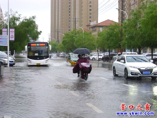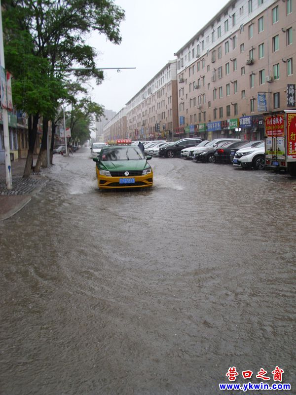 (營(yíng)口之窗網(wǎng)訊 胡 然)8月24日下午,大雨過(guò)后沿著營(yíng)口市東昌街西行見(jiàn)到它已變成了水街。汽車(chē)涉水走過(guò)半個(gè)車(chē)輪深的積水就像在游泳。拐向新興大街,發(fā)現(xiàn)它的兩邊布滿(mǎn)了積水,中間只有少量積水。其他的街路也都有或多或少的積水,但最深也就剛能淹沒(méi)轎車(chē)的輪子。
