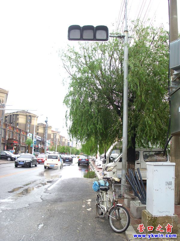 (營口之窗網(wǎng)訊 胡 然)8月 27日早晨,來到營口市公園路與東昌街路口發(fā)現(xiàn)南北方向的紅黃綠信號燈沒有一個亮的,而3天前該組信號燈紅綠燈齊亮。路口的紅綠燈不正常閃亮容易造成交通秩序混亂,或引發(fā)車禍??磥磉@組信號燈應(yīng)該好好的檢修一下了。