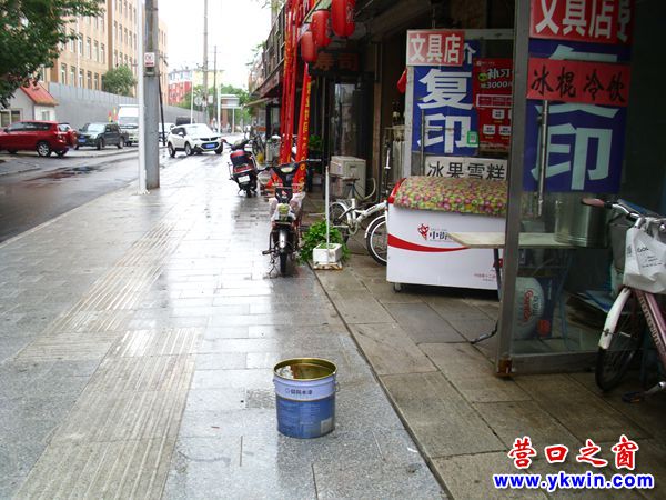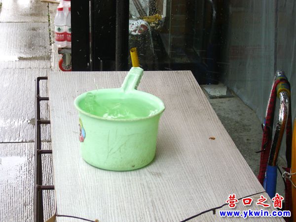 (營口之窗網(wǎng)訊 胡 然)8月31日15點,雨后經(jīng)過重修的八田地街,見到好幾個路邊店的門前擺著接滿雨水的桶(水舀子)。接雨水乃是節(jié)水的一種方式應(yīng)該點贊。用得來不費功夫的雨水澆花拖地可以節(jié)省自來水何樂而不為?
