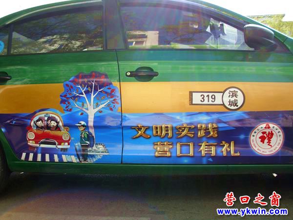 出租車穿上了這樣的“文化衫”后,靜止的“營口有禮”就流動了起來。它不僅提示營口的行人們要有禮,還能約束開出租車的司機不失禮。但愿此舉不是對牛彈琴,不是披著羊皮,不是曇花一現(xiàn)。