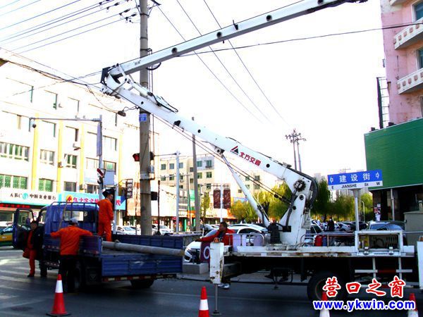 (營口之窗網(wǎng)訊 胡 然)11月4日,營口市交警設(shè)施大隊(duì)出動(dòng)五六名施工人員和工程車、貨車各一輛,將位于建設(shè)街與東新路路口傾斜的閑置水泥桿連根拔出裝車運(yùn)走,消除了安全隱患。原來,這根水泥桿是幾年前的交通信號(hào)燈桿,交通信號(hào)燈更新?lián)Q代后水泥桿沒有及時(shí)拆除才發(fā)生了傾斜。