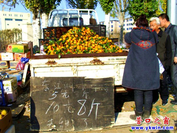 (營(yíng)口之窗網(wǎng)訊 胡 然)11月10日,營(yíng)口市大菜市的最后一天,來到太白路市場(chǎng),見到十元八斤的小葉橘以為就夠便宜的了,誰知旁邊十元十斤的大陽梨更便宜。這兩種水果的售價(jià)近年在營(yíng)口是最低的。