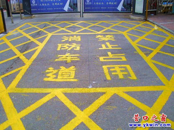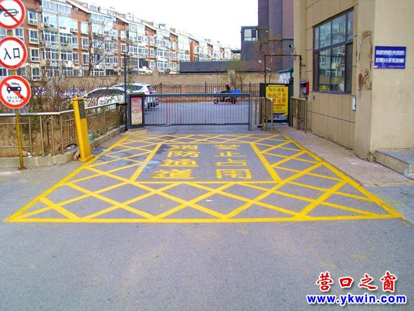 (營口之窗網(wǎng)訊 胡 然)為了強烈警醒亂停車的司機,營口市金街領(lǐng)郡小區(qū)將特大的黃色網(wǎng)格和“消防車道 禁止占用”的圖文標志畫在了小區(qū)西、北兩個大門入口的地上。此舉,對于防止消防車道受阻不知要比只在周圍懸掛“禁占”標語要強多少倍。