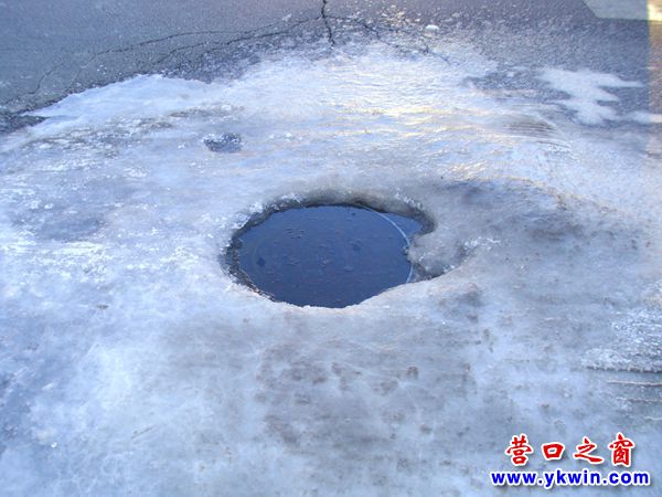 (營(yíng)口之窗網(wǎng)訊 胡 然)市府路上現(xiàn)冰眼 黑眼仁是水門(mén)井