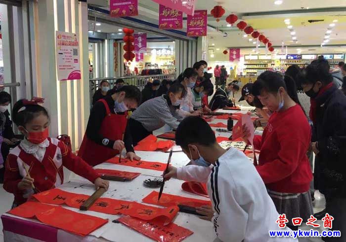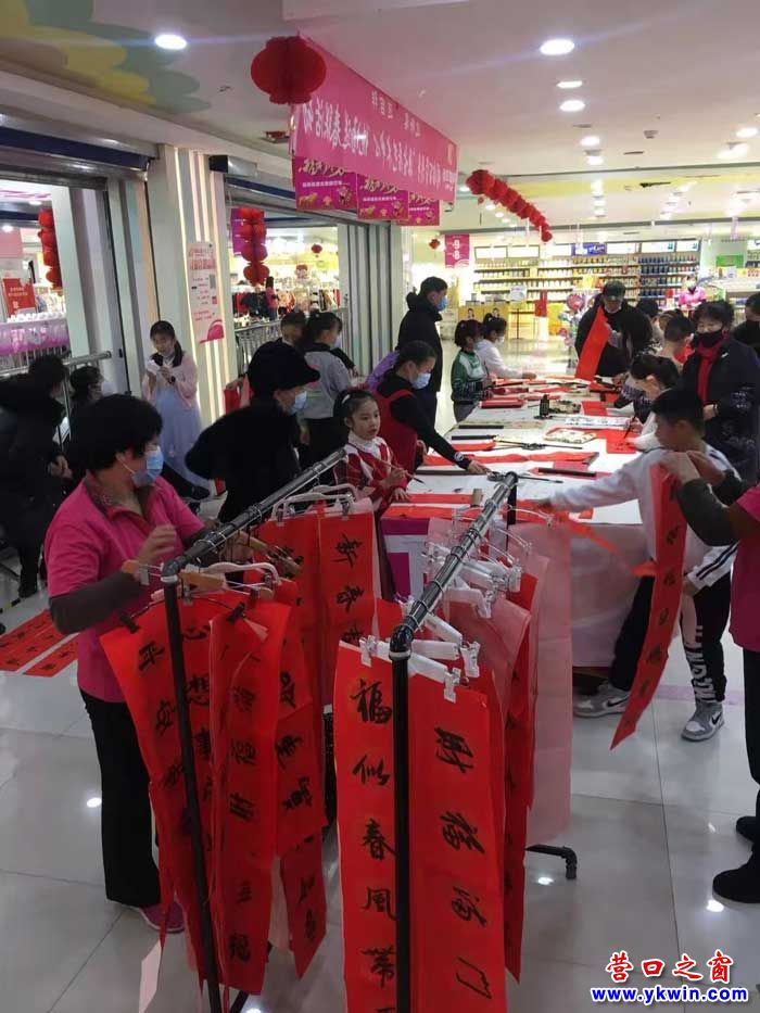(營口之窗“圖說營口”)大石橋市王顯紅書法培訓學校在新春佳節(jié)即將來臨之際組織優(yōu)秀學員與老師在同臨百貨向城鄉(xiāng)居民免費送?;顒?,書寫福字春聯(lián)1000余幅,深受百姓的歡迎。