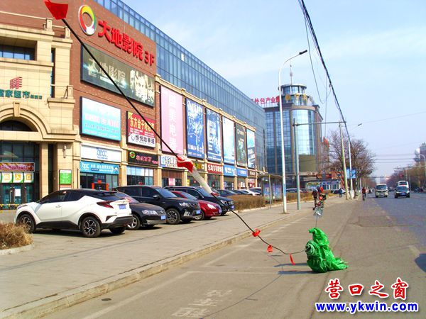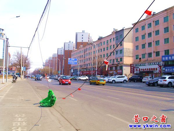 (營口之窗網(wǎng)訊 胡然)截至3月8日,空降營口市錦聯(lián)超市西門前太和北街邊的通訊線纜已經(jīng)3天沒人管了。若不是好心人在拖地的線上綁了紅綠塑料布,也許行人或行車就和它發(fā)生了親密接觸。