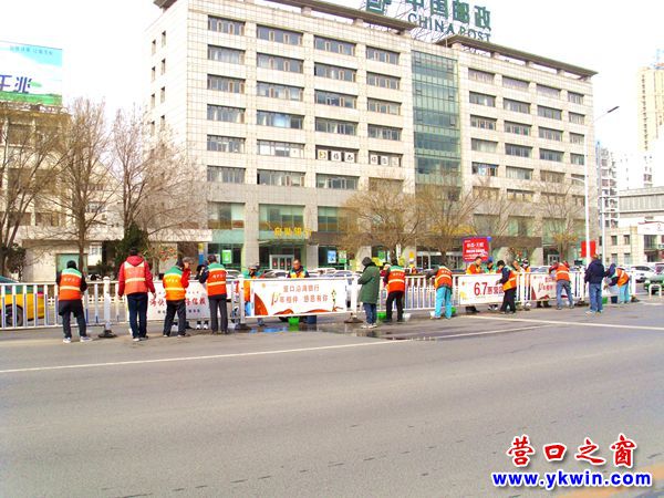營(yíng)口維護(hù)集團(tuán)為渤海大街隔離護(hù)欄搓澡