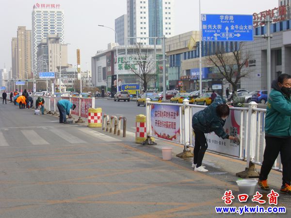 (營(yíng)口之窗網(wǎng)訊 胡然)為創(chuàng)建文明城市,3月18日,營(yíng)口維護(hù)集團(tuán)出動(dòng)三四十名工作人員為營(yíng)口市渤海大街隔離護(hù)欄搓澡。以前,這些護(hù)欄很少享受如此優(yōu)待,現(xiàn)在這些死角正在陸續(xù)被消滅。對(duì)于隔離護(hù)欄來(lái)說(shuō),今天真是個(gè)好日子!