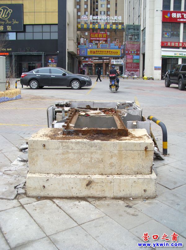 在營口,墻上的小廣告都有人清除,可廣場(chǎng)上的“小廢墟”為什么就沒人清除呢?
