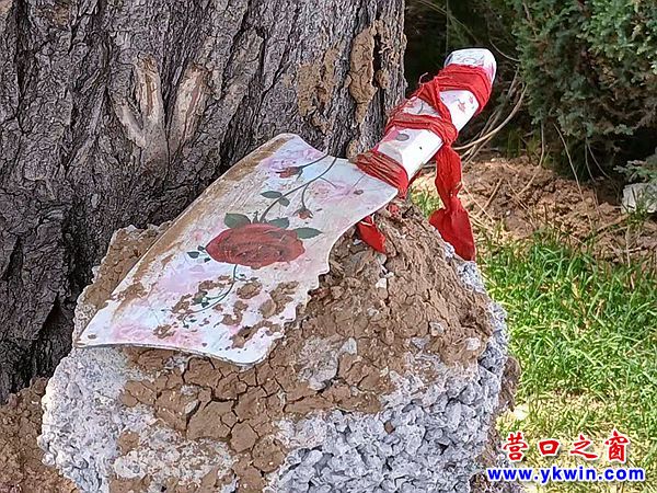 (營口之窗網(wǎng)訊 李凱)日前,在營口市遼河大街新修建的城市綠地廣場,發(fā)現(xiàn)這里的一棵大柳樹下,有人用破磚摞起神臺,供奉一把滿是泥土的菜刀,刀刃向內(nèi),透著邪氣,不知何故。