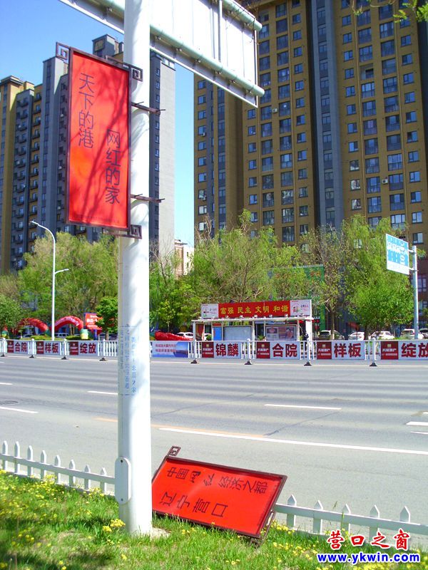 據(jù)觀察,這對廣告牌上面分別寫的是“天下的港 網(wǎng)紅的家”和“遼寧營口 中國網(wǎng)紅經(jīng)濟之都”。請廣告牌的主人快來修一修吧。