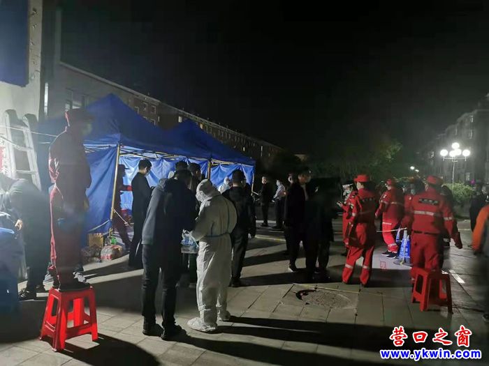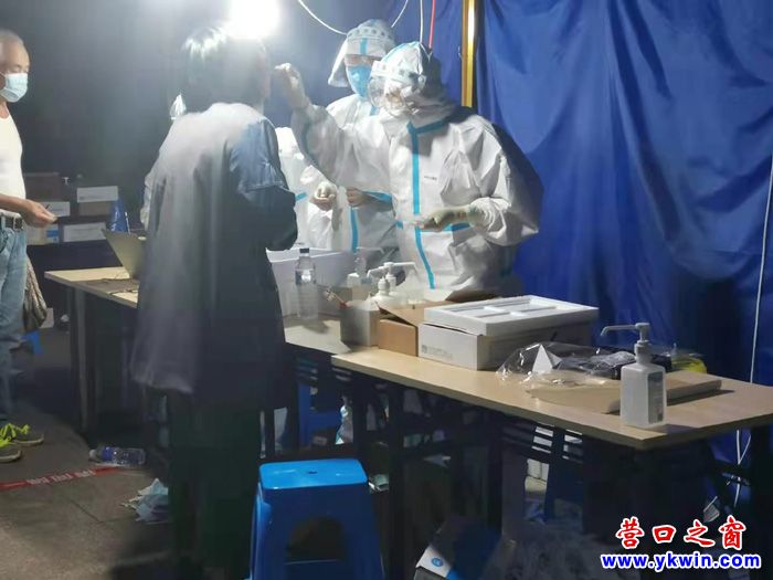大石橋市各個(gè)鄉(xiāng)鎮(zhèn)、社區(qū)連夜進(jìn)行核酸檢測(cè),醫(yī)護(hù)人員中午晚上不休息,社區(qū)人員挨門(mén)逐戶(hù)通知。