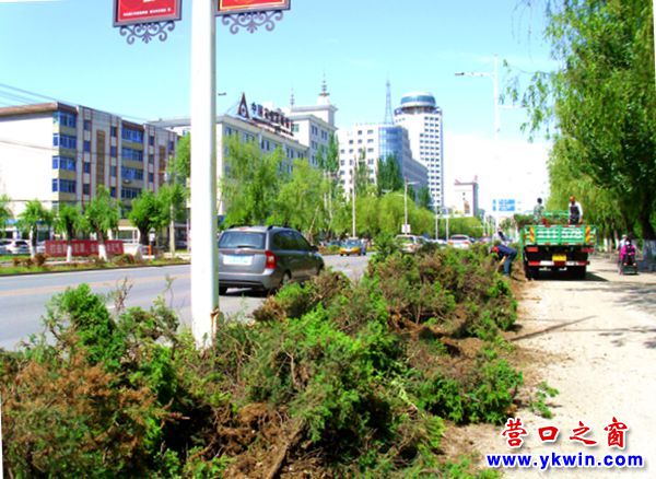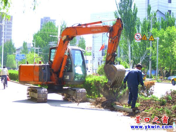 (營口之窗網(wǎng)訊 胡然)繼上個(gè)月拔出喬木之后,5月25日,施工隊(duì)又將營口市金牛山大街路島中的灌木陸續(xù)挖出運(yùn)走。這是該街扒掉路島、加寬街面工程的第二步。隨著工程的進(jìn)展,該街的路島將成為歷史。