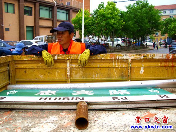 (營口之窗網(wǎng)訊 胡然)5月27日,營口之窗報道了營口市惠賓路路標躺著迎賓的事。5月28日早晨一上班,兩名搶修工人就來到現(xiàn)場將躺著的路標拆解裝車拉回去維修。這樣的速度市民非常滿意。