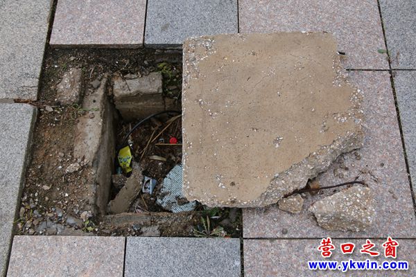 (營口之窗網(wǎng)訊 李凱)6月4日,營口市民生路與新和大街交匯處南側(cè)人行道上有一個(gè)井口敞開著,破損的水泥井蓋被丟在一旁,井里有線纜,希望產(chǎn)權(quán)單位盡快維修,別讓小小井蓋成為威脅市民安全的“陷阱”。