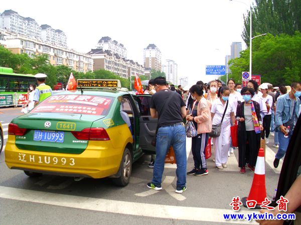 (營口之窗網(wǎng)訊 胡然)6月7日中午,高考語文考試還沒結(jié)束,一排懸掛“營口有禮”和“雷鋒文化”小紅旗的的士,就在營口市三高門前的渤海大街排成了一百多米的長隊(duì)等候了,他們準(zhǔn)備免費(fèi)送陌生的考生和陪考的家長回家吃午飯。11點(diǎn)半,考生們陸續(xù)走出考場,他們和家長一起先后坐上了這些免費(fèi)專車……