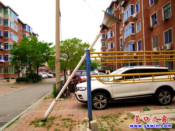 (營口之窗網(wǎng)訊 胡然)6月7日,穿過營口燃?xì)夥止緰|小馬路,見到相距50米的路邊一個(gè)路燈傾倒,一個(gè)井蓋塌陷兩個(gè)小安全隱患,這可真是不虛此行啊。