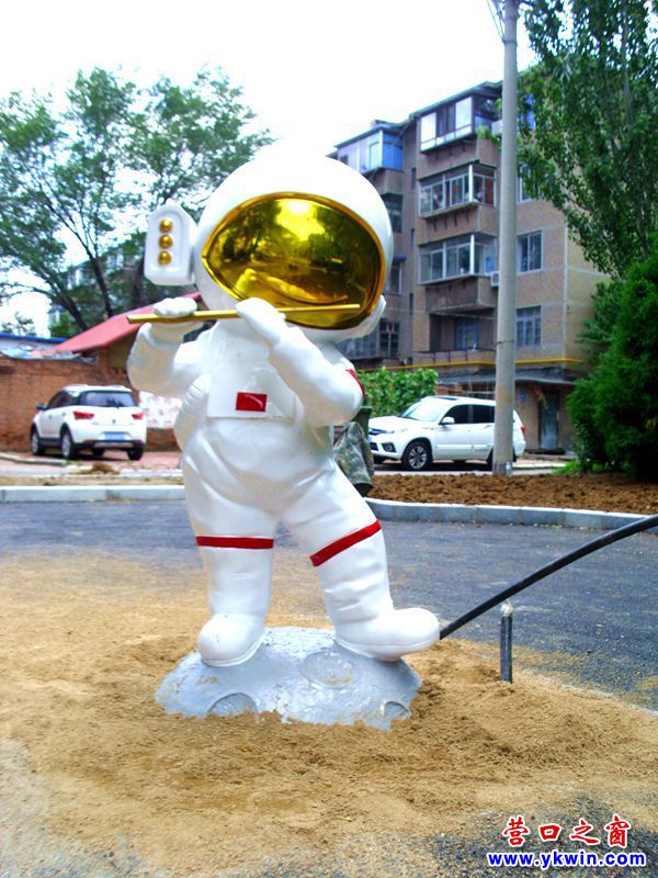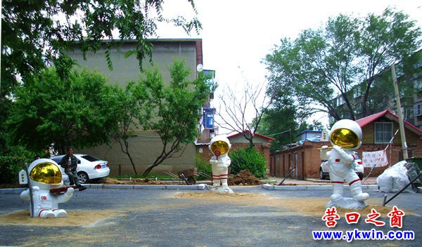 營口市街路邊新增“小孩、天鵝和長頸鹿”