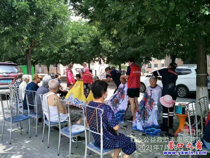 2021年7月18日上午,鲅魚圈紅心公益救助志愿服務(wù)隊(duì)第四次走進(jìn)金海社區(qū),為這里的老人們愛心義剪,測量血壓,贈(zèng)藥!