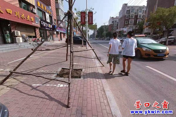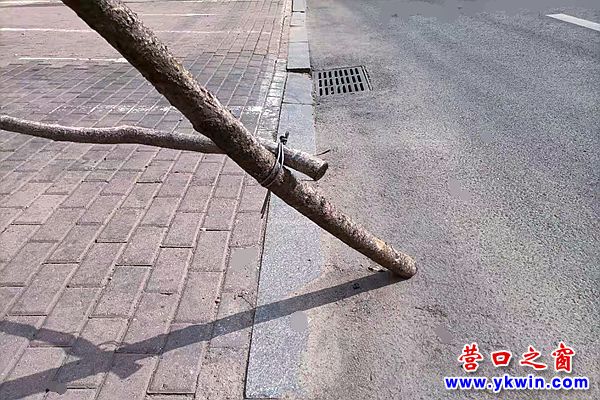(營口之窗網(wǎng)訊 李凱)8月3日,筆者在營口市站前區(qū)新華路的大四川水煮魚門前看到一棵行道樹的支撐架伸到了路面上,行人路過時(shí),稍不留意就會(huì)被絆倒,這活干的真是太粗心了。