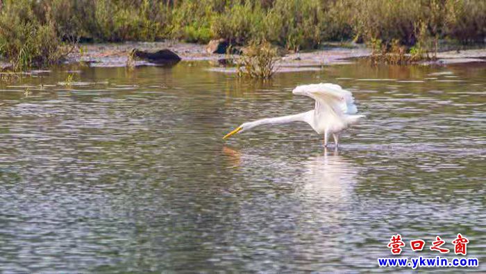 8月8日,熊岳河白鷺濕地公園驚現(xiàn)國家一級保護動物黃嘴白鷺。