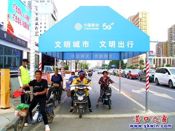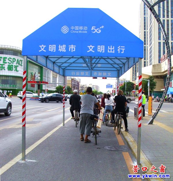 (營口之窗網(wǎng)訊 胡然)8月11日,營口市市府路與渤海大街十字路口西南角萬達廣場北邊和西北角財富酒店廣場東邊的非機動車道上,突然出現(xiàn)了兩個漂亮的遮陽棚,上面寫著“文明城市 文明出行”,這在營口市是十分罕見的。