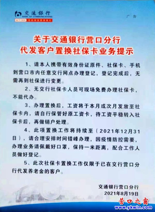 交通銀行營口分行《代發(fā)客戶置換社??I(yè)務提示》