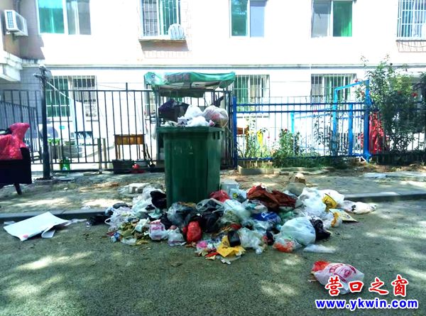(營口之窗網(wǎng)訊 胡 然)近日,營口市渤海明珠小區(qū)B區(qū)的居民鬧心了。因?yàn)樾蘼罚囘M(jìn)不來,致使七八棟居民樓門前的十幾桶垃圾都四五天沒運(yùn)出了。垃圾桶里外都是垃圾,而且異味很大。