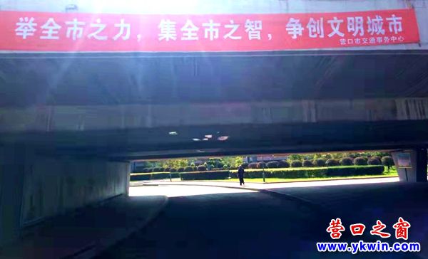 涵洞南面懸掛的創(chuàng)建文明城市標(biāo)語